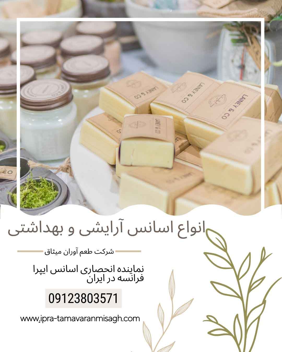 اسانس آرایشی و بهداشتی ایپرا فرانسه امروزه اسانس های آرایشی و بهداشتی یکی از مهم ترین مواد ترکیبی در ترکیبات شامپو،صابون ،انواع خوشبوکننده هوا،انواع کرم های پوستی ،انواع لوسیون ها، و در صنعت شمع سازی کاربرد دارد.انتخاب اسانس مناسب نه تنها روی محصول نهایی تاثیر گذار است بلکه بر کیفیت و رضایت مشتریان نیز تاثیر گذار است. اسانس های آرایشی و بهداشتی به دو دسته تقسیم میشود دسته اول شامل اسانس های میوه ای :اسانس پرتقال،اسانس موز،اسانس نارگیل،اسانس رز،اسانس نعنا،اسانس سیب، اسانس هل و دسته دوم اسانس وان